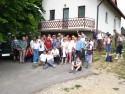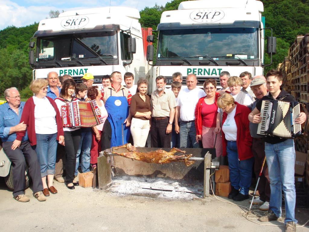 Ob postavitvi ne manjka dobre kapljice, domače hrane in pa seveda glasu harmonike.