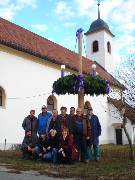 Člani Turističnega društva so se v soboto zbrali pri Novi cerkvi pred prvo adventno nedeljo ter s skupnimi močmi izdelali adventni venec – velikana in adventne venčke za tri cerkve.